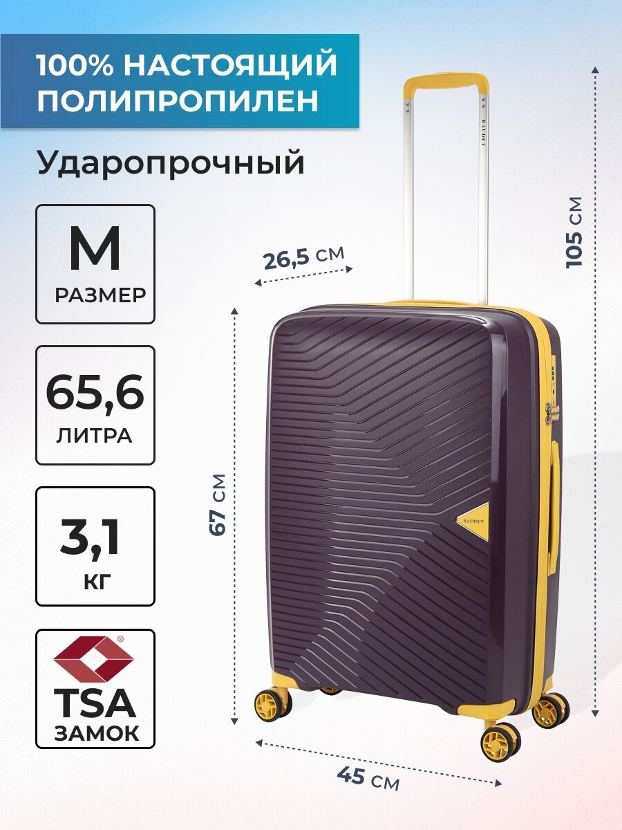 Чемодан на колесах BAUDET 812-M (фиолетовый/желтый) из полипропилена, 65,6 л