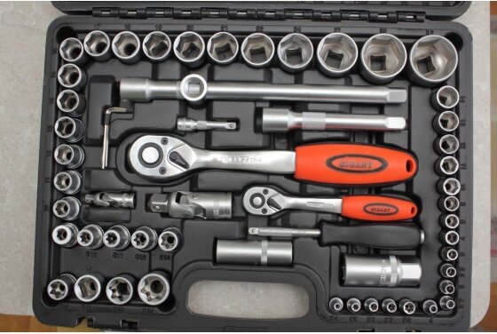 | Ручной инструмент подробно | трещотка 1/4": 24 зуба; трещотка 1/2": 24 зуба; вороток с рукояткой 6"; Т-образный вороток с ползунком |