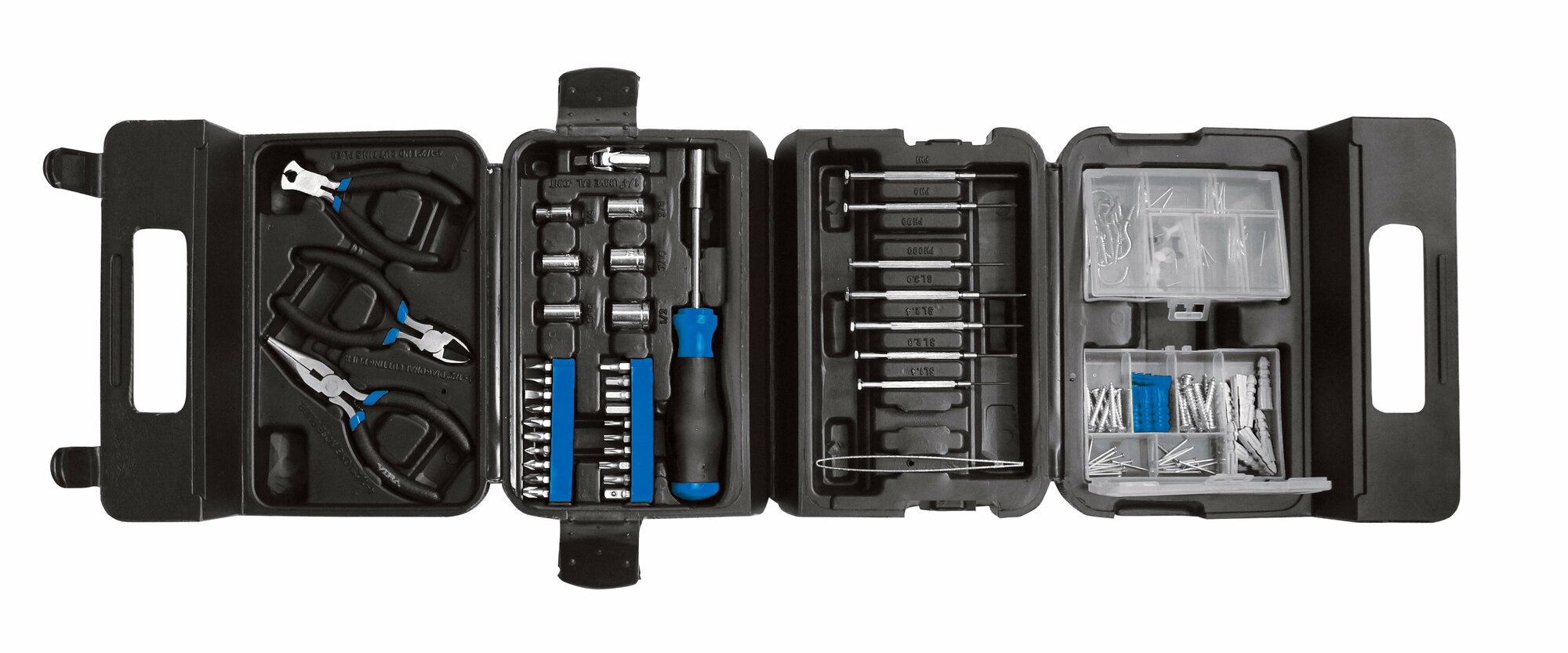 | Дополнительная информация | пинцет, кнопка 10 шт, гвозди 10 шт, гвозди 40 шт, дюбель 10 шт, дюбель 8 шт, крючок 10 шт, саморез 10 шт, саморез 8 шт |