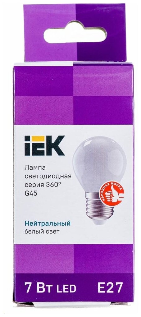 Ниже Вы можете прочитать отзывы на Лампа светодиодная G45 шар матов. 7Вт 230В 4000К E27 серия 360°, IEK LLF-G45-7-230-40-E27-FR (10 шт.), ознакомится с подробными характеристиками, посмотреть интересные обзоры и фотографии на Лампа светодиодная G45 шар матов. 7Вт 230В 4000К E27 серия 360°, IEK LLF-G45-7-230-40-E27-FR (10 шт.).