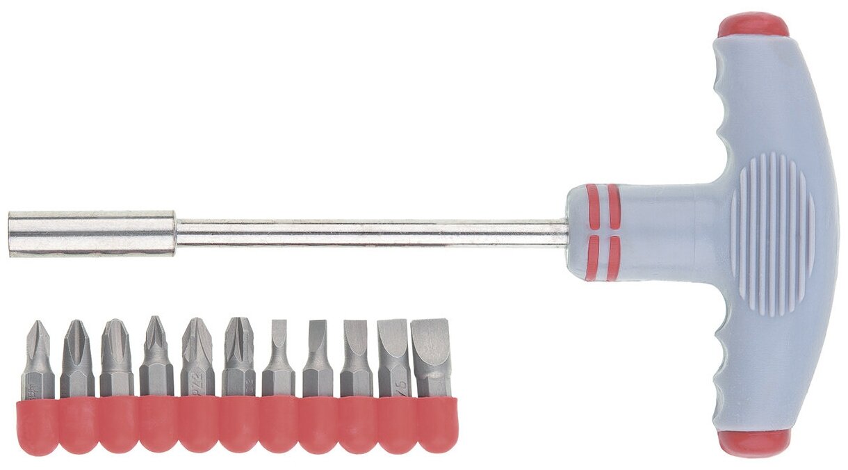 Отвертка с Т-образной эргономичной ручкой и набором бит, 11 шт, CrV Matrix ( 11567 )