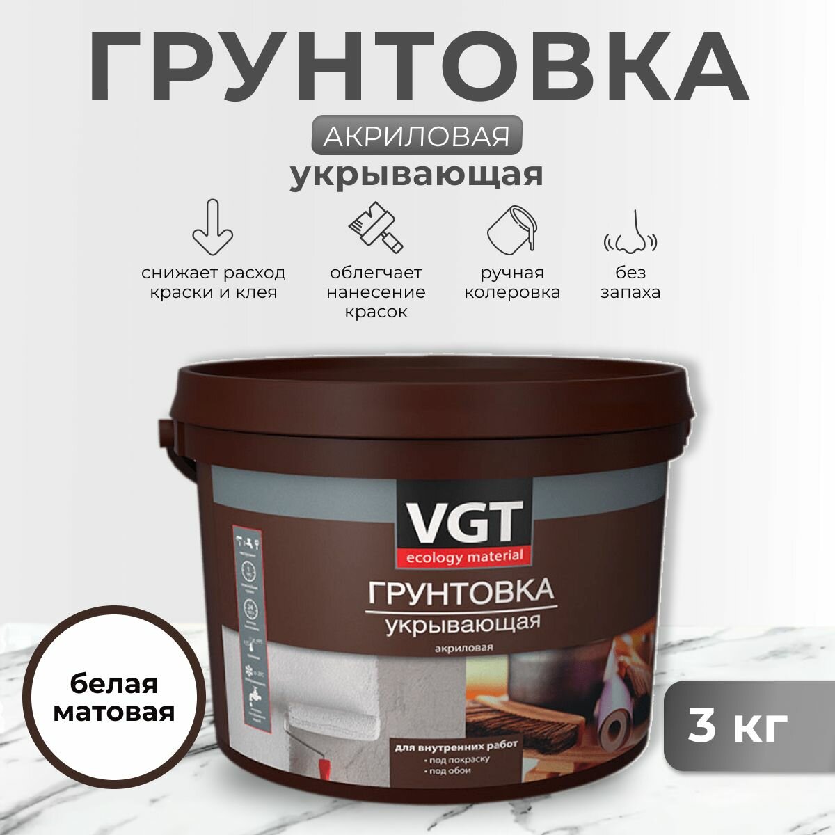Грунтовка укрывающая для внутренних работ Vgt (ВГТ) ВД-АК-0301, 3 кг