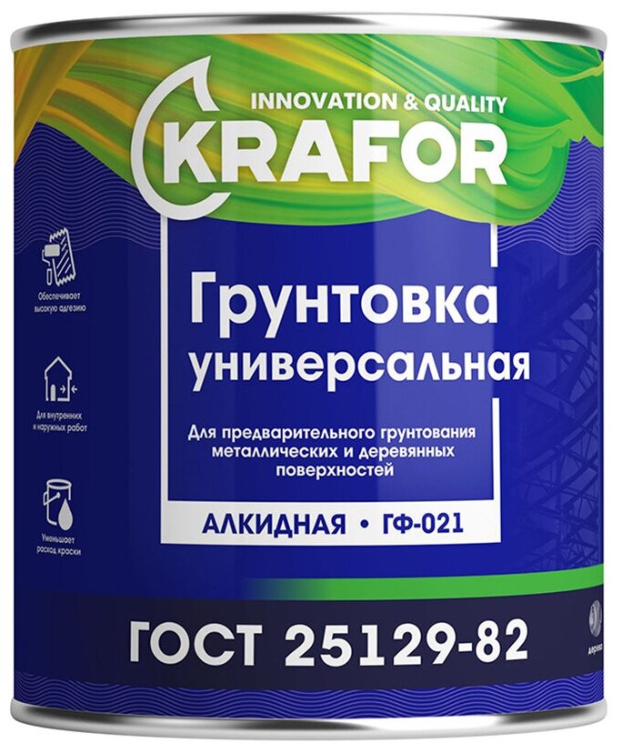 Грунтовка ГФ-021 по дереву и металлу Krafor , алкидная, 0,8 кг, серая