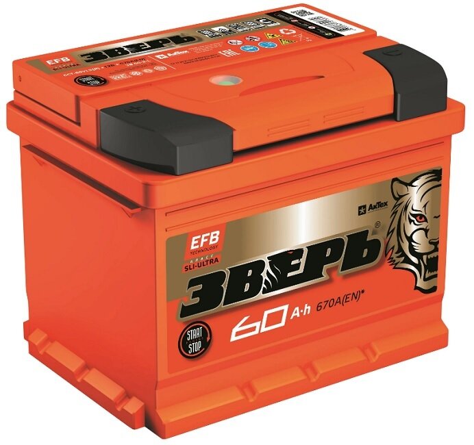Аккумулятор автомобильный Зверь EFB 60 А/ч 640 А прям. пол. Евро авто (242x175x190) ZVEFB 60-З-L 2021г интересное: