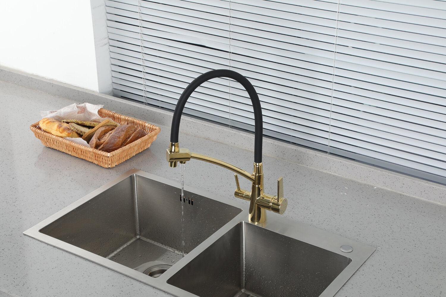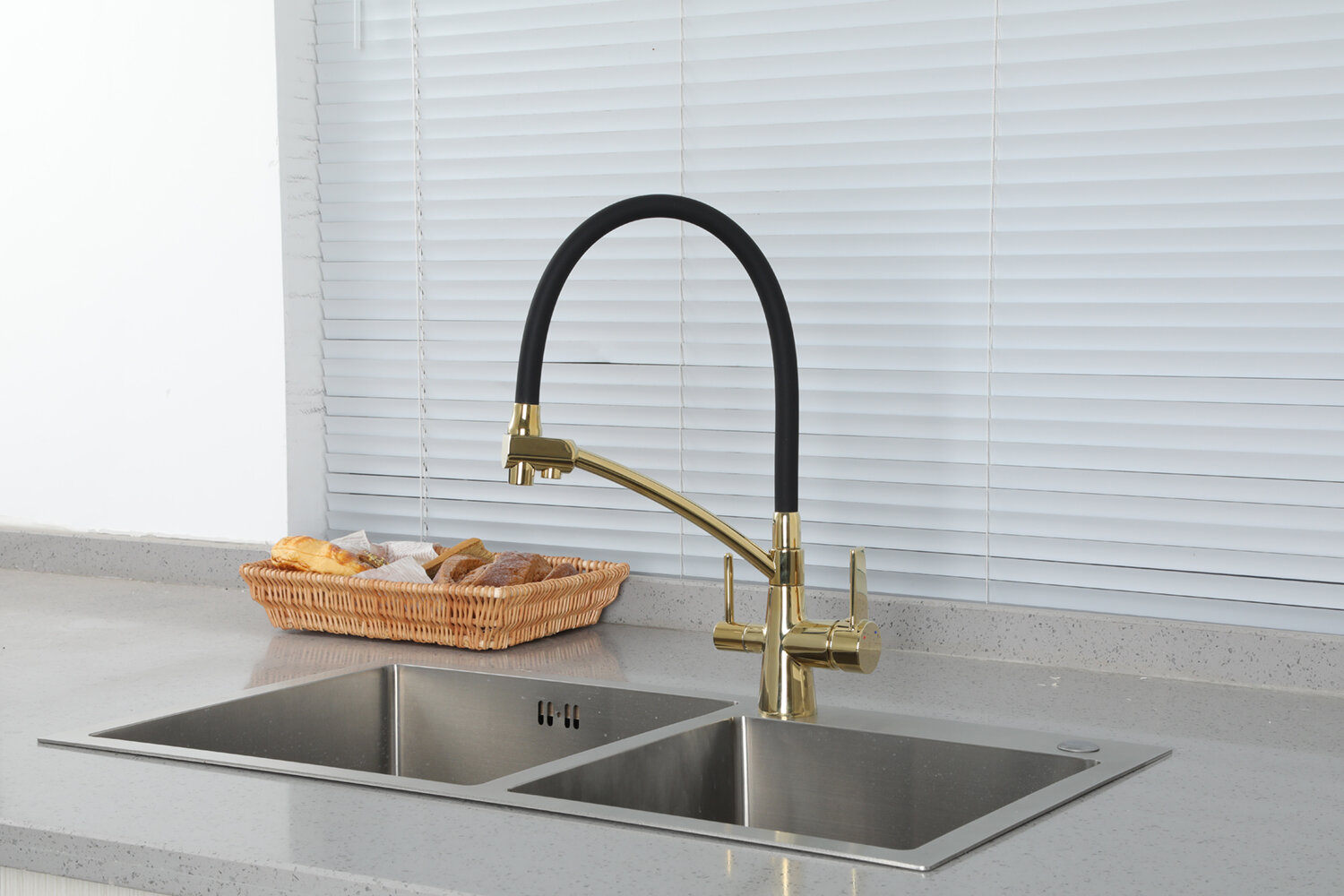 Смеситель для кухни под фильтр Gappo G4398-13 золото сатин,черный