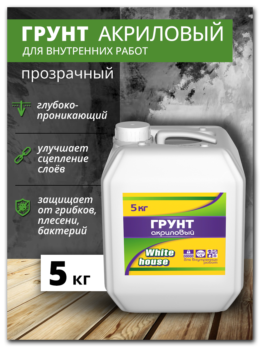 Грунтовка для стен WHITE HOUSE, акриловая, глубокого проникновения для внутренних работ, 5 кг