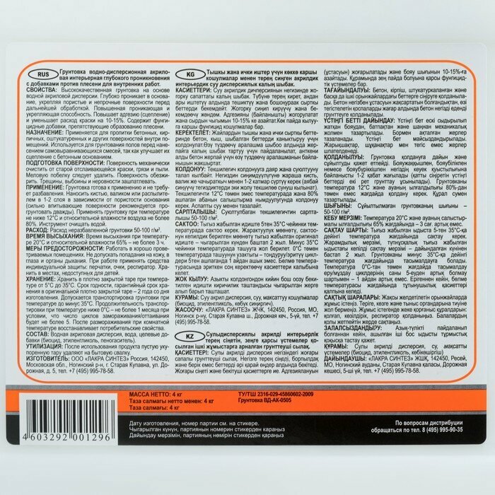 Грунт Лакра Интерьерный глубокого проникновения против плесени 4,0 кг 9077678 .