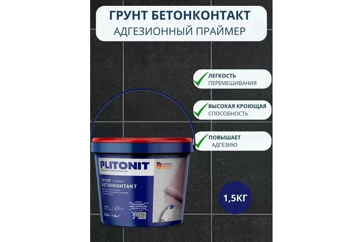 Ниже Вы можете прочитать отзывы на Грунт бетоноконтакт Plitonit 1,5 кг, ознакомится с подробными характеристиками, посмотреть интересные обзоры и фотографии на Грунт бетоноконтакт Plitonit 1,5 кг.
