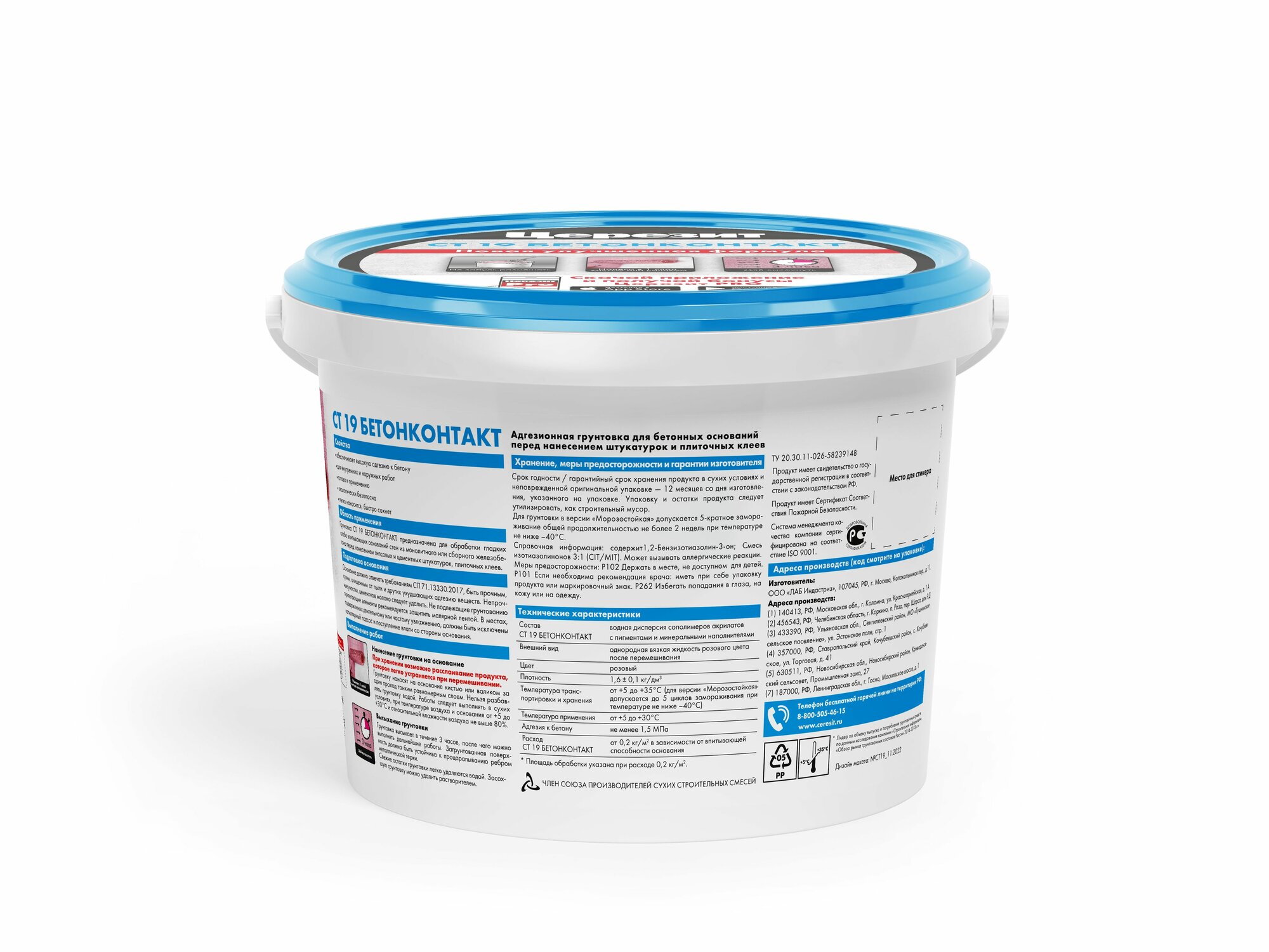 Ceresit Грунтовка Бетонконтакт CT 19 5 КГ Зима 1/120 208289 .