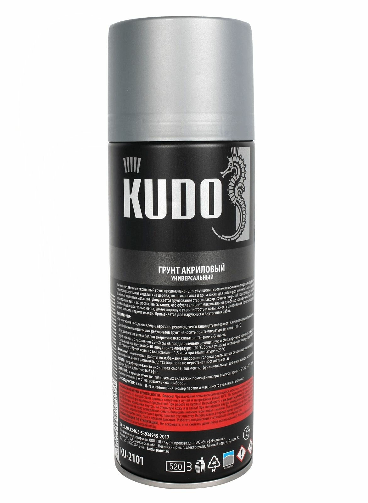 Эльф Филлинг ЗАО Грунт акриловый аэрозольный Kudo KU-2101, 520 мл, серый