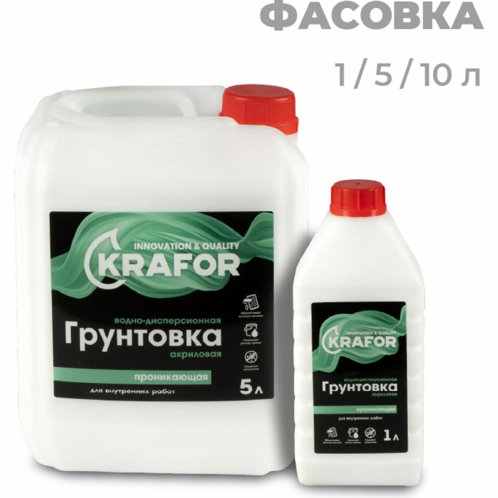 Грунтовка проникающая водно-дисперсионная, для внутренних работ Krafor, 5 л