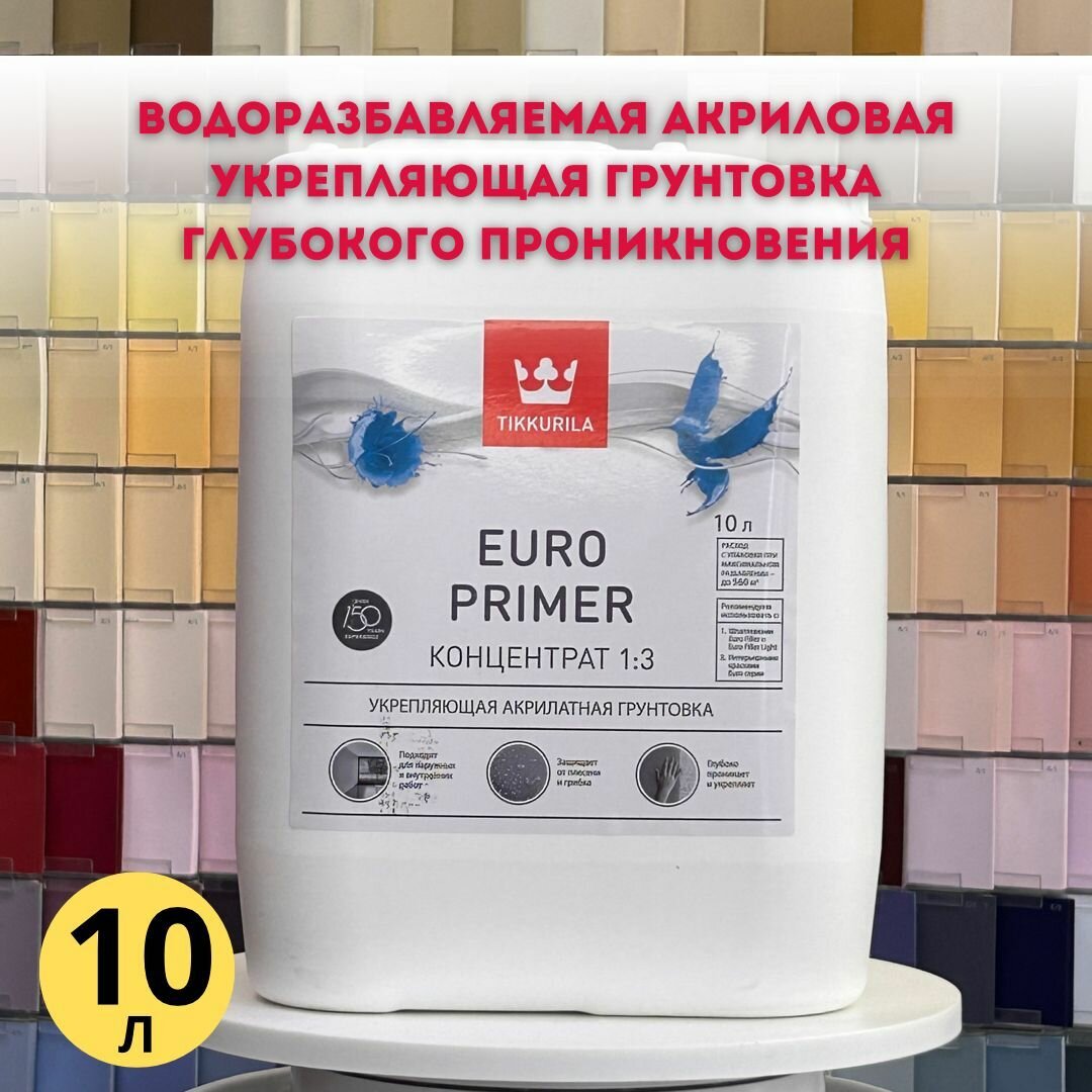 Тиккурила Евро Праймер грунт концентрат 1:3 (10л) / TIKKURILA Euro Primer грунтовка акрилатная укрепляющая концентрат 1:3 (10л)