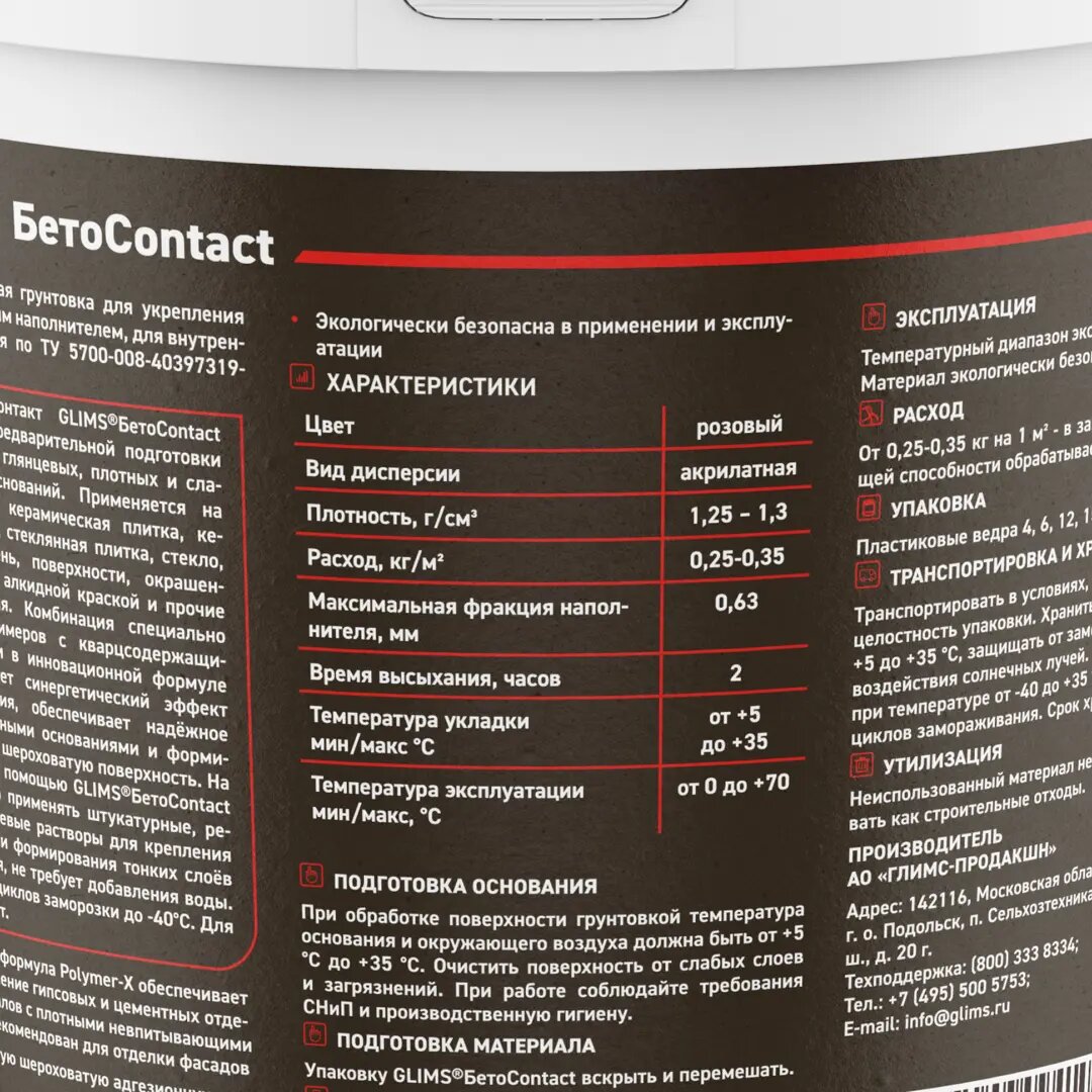 Глимс БетоКонтакт бетоноконтакт для внутренних работ (4кг) / GLIMS БетоContact адгезивный грунт для внутренних работ (4кг)