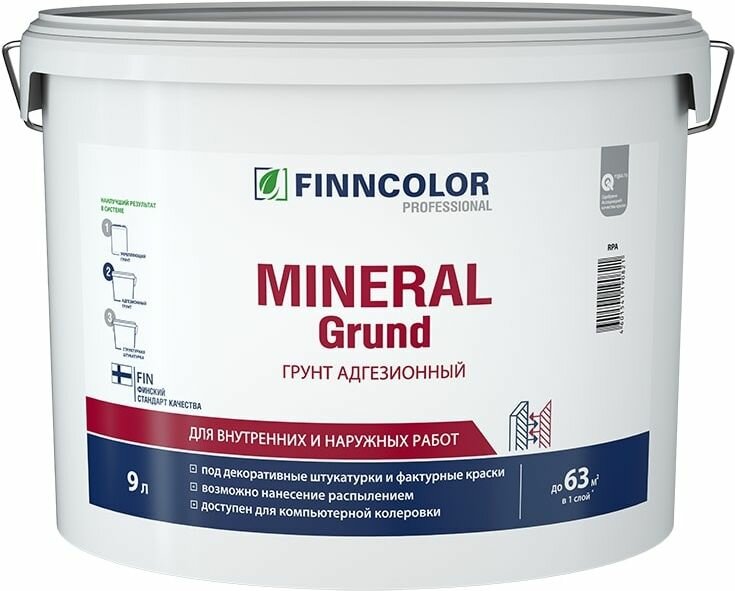 Грунт адгезионный под декоративную штукатурку Finncolor Mineral Grund RPA, 9 л
