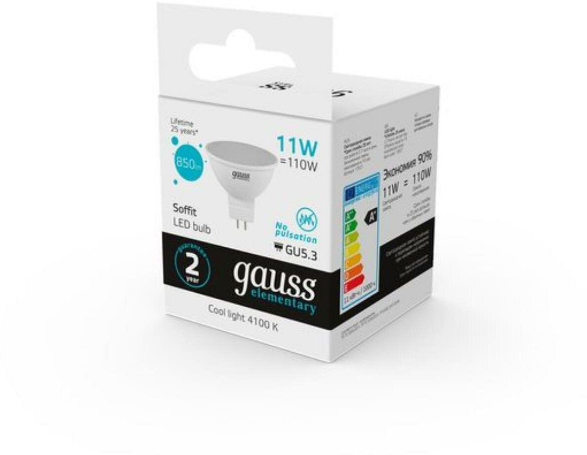 Купить 13521 Лампа Gauss Elementary MR16 11W 850lm 4100K GU5.3 LED 1/10/100