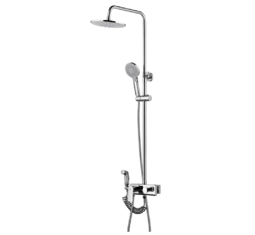 | Комплектация | душевая стойка / гигиенический душ / излив / установочный комплект / штанга / верхняя лейка / ручная лейка / шланг |