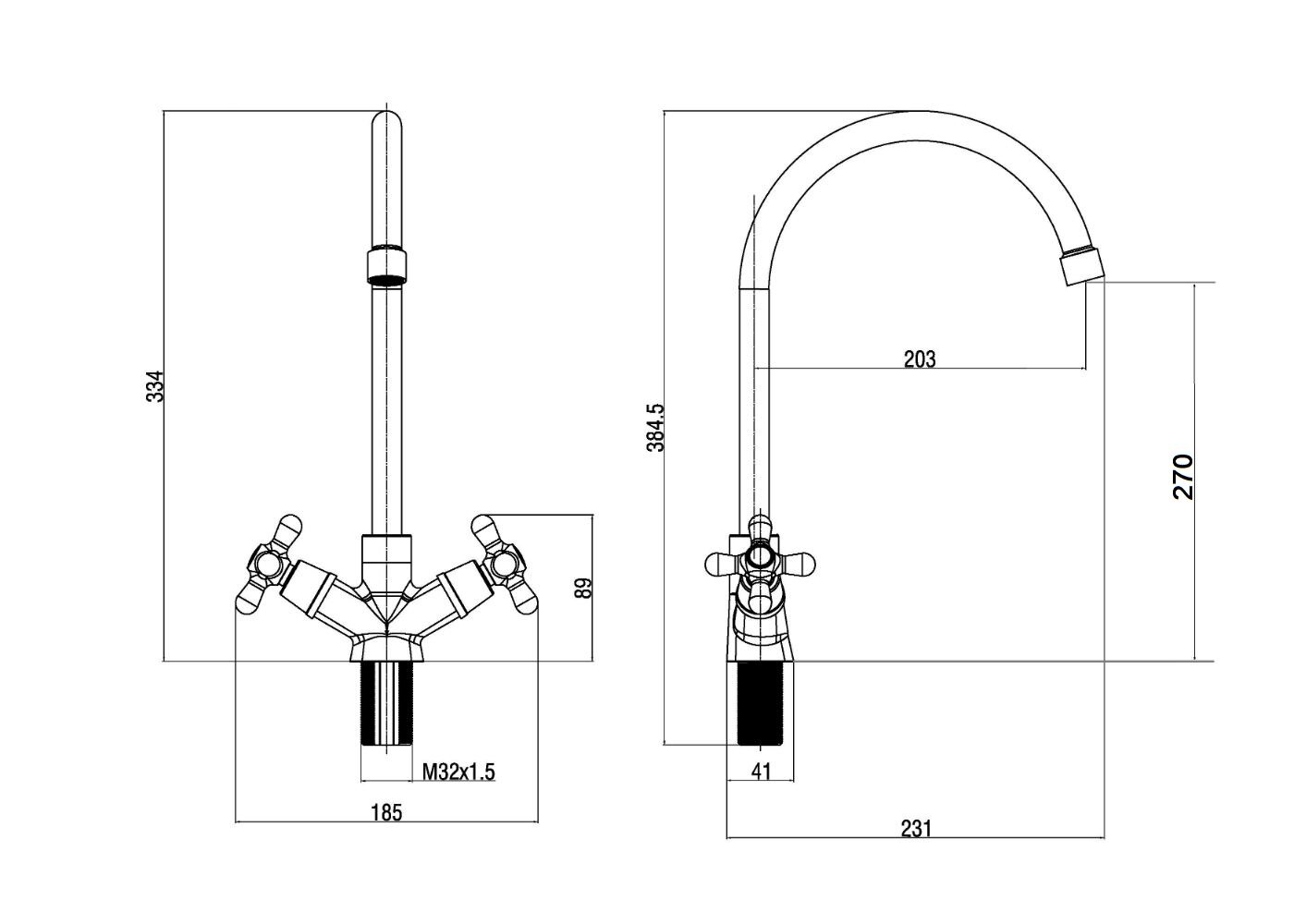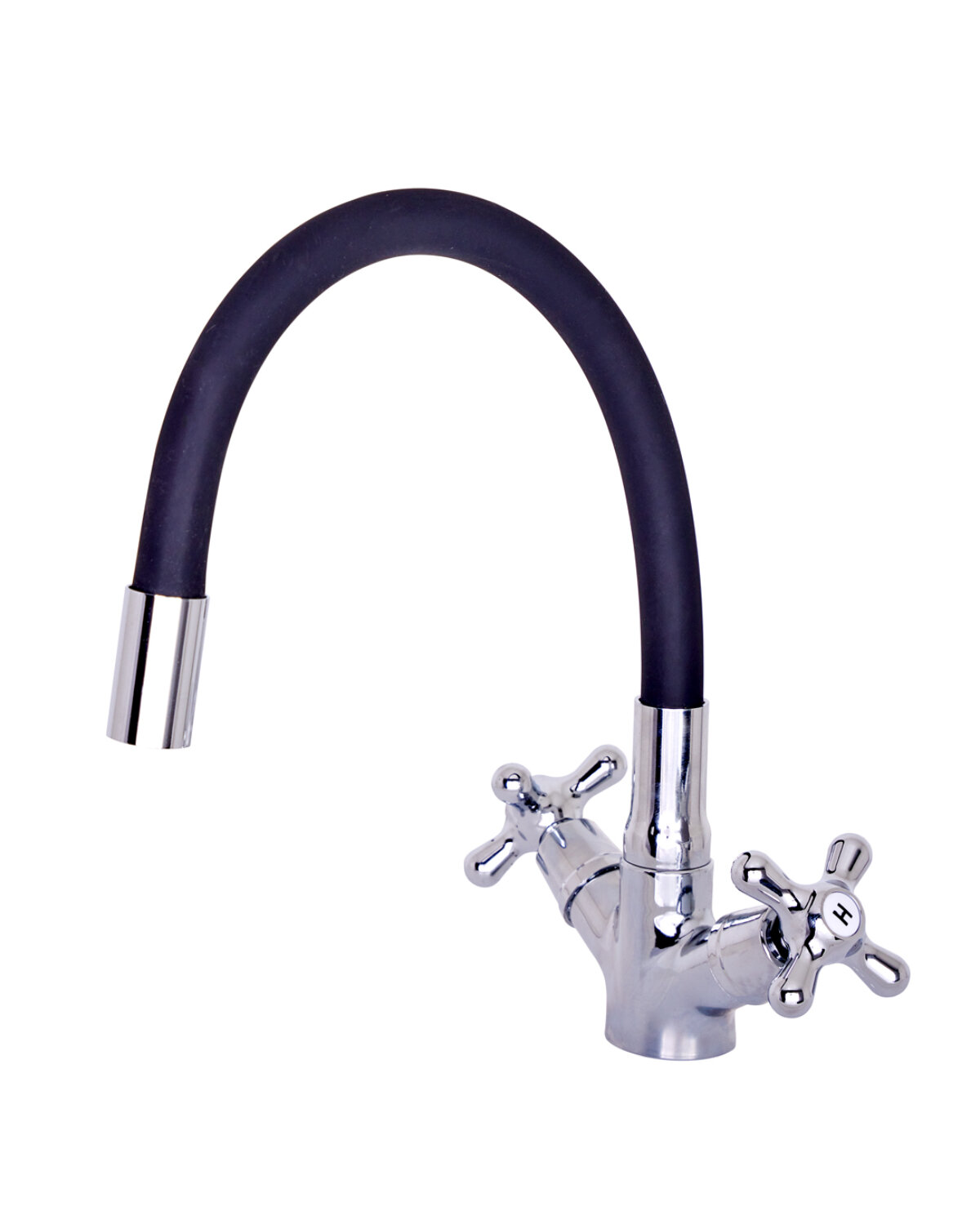 Смеситель для кухни двухвентильный OneLife P03-007cr, хром, черный