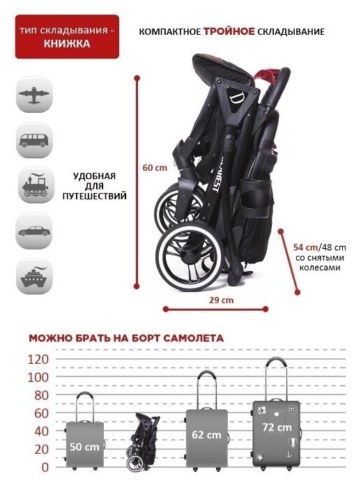 | Плюсы: | Очень лёгкая в управлении, даже одной рукой и компактная, легко складывать и разбирать, колеса снимаются за минуту |