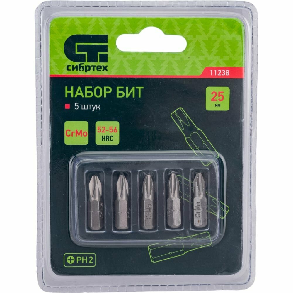 СИБРТЕХ Набор бит PH2 x 25, сталь CrMo, 5 шт Сибртех, ( 11238 )