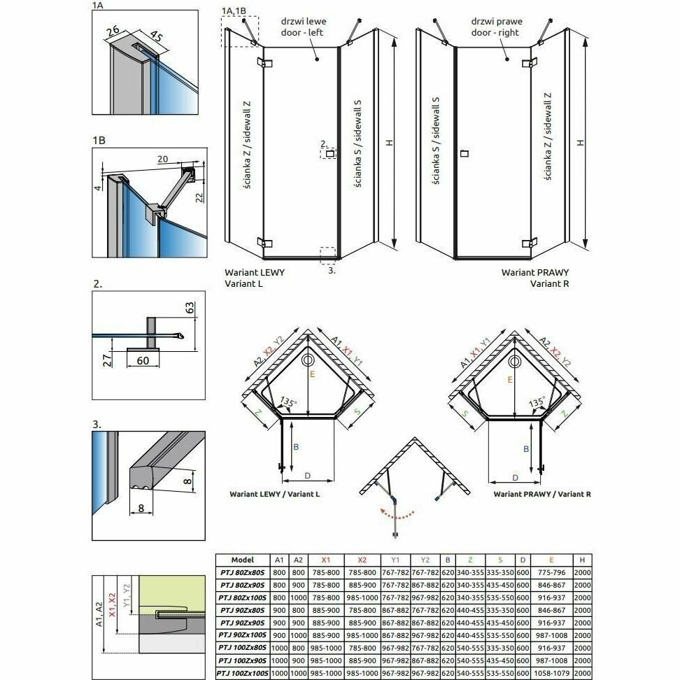 Душевая дверь Radaway Almatea DWJ 120 стекло прозрачное/профиль хром левая