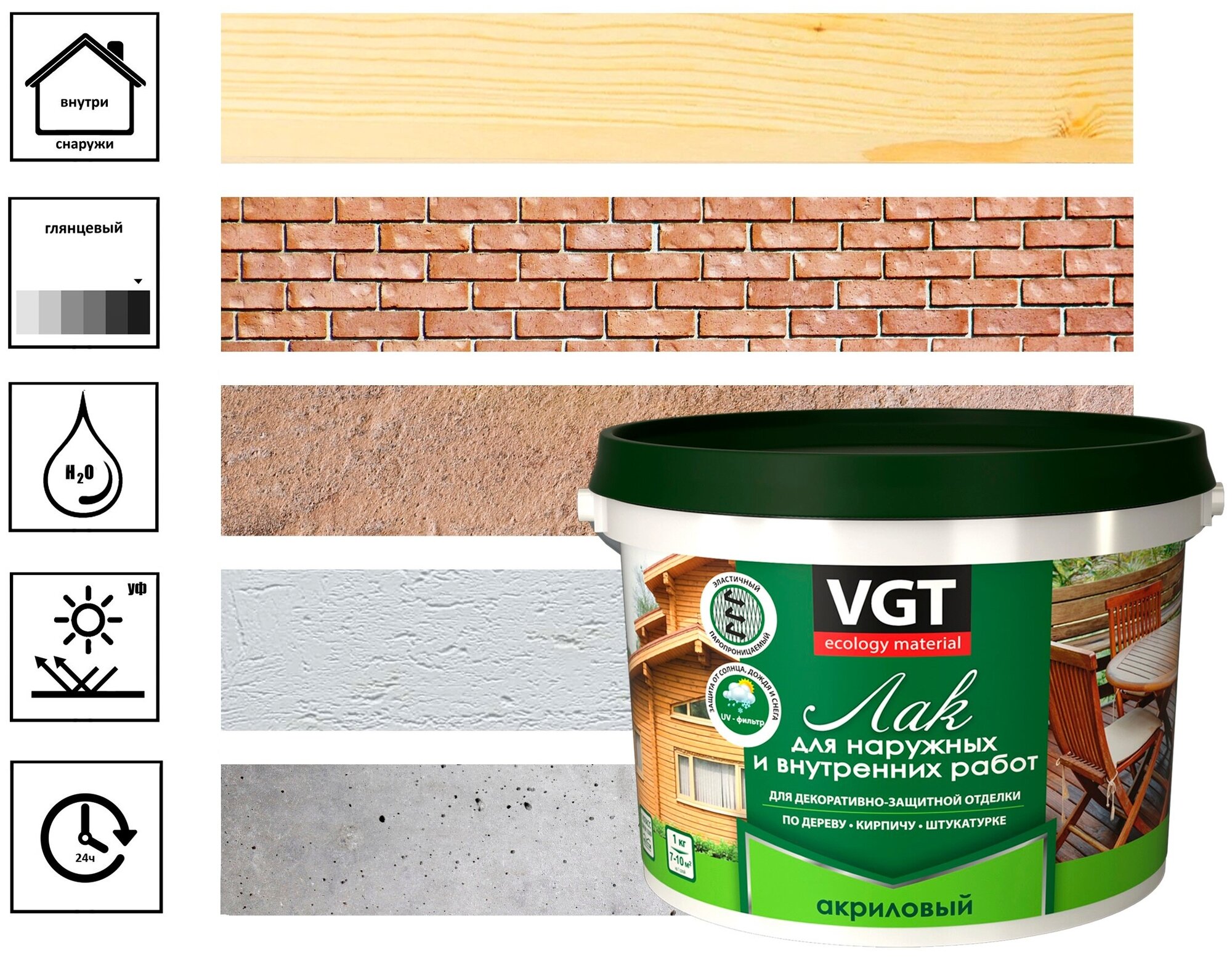 ВГТ лак акриловый для наружных и внутренних работ глянцевый (2,2кг) / VGT лак акриловый для наружных и внутренних работ по дереву кирпичу штукатурке г