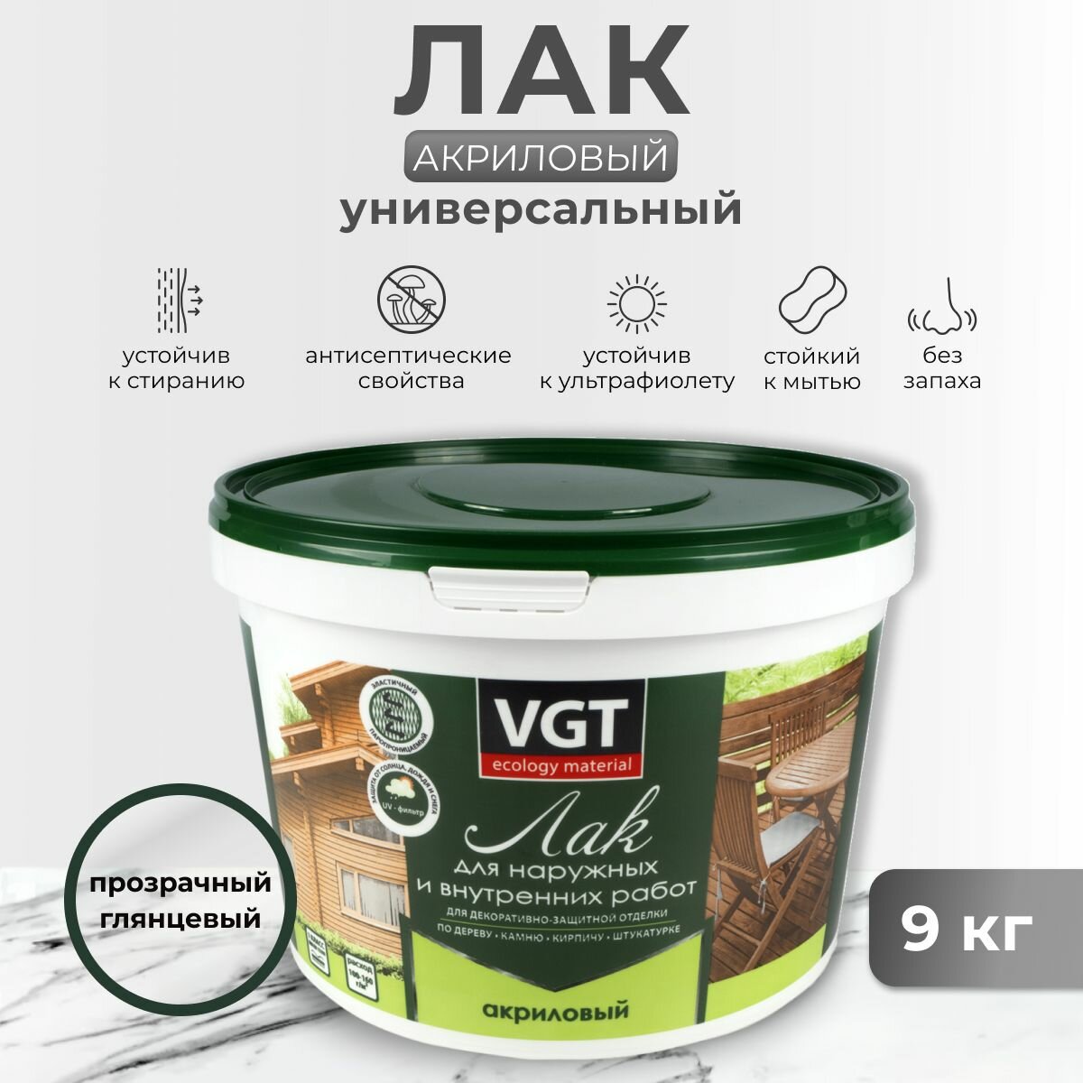 VGT ВГТ Лак акриловый для наружных и внутренних работ, глянцевый 9кг