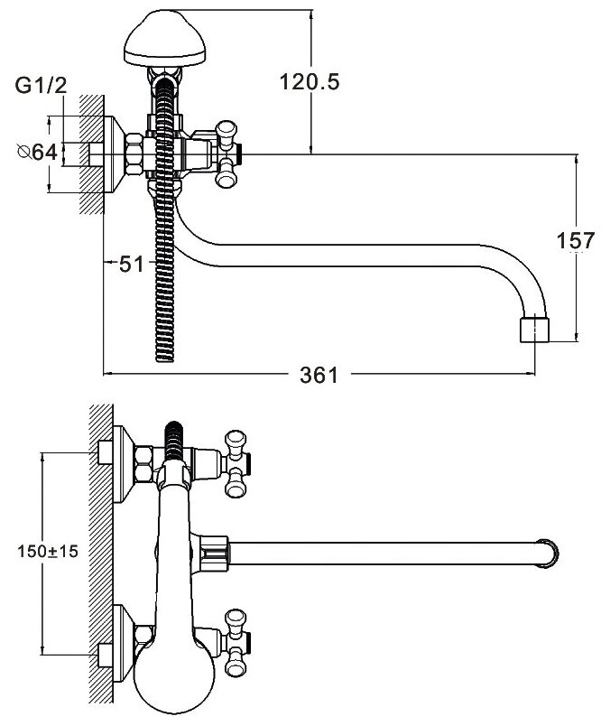 Купить DMT7-A722, смеситель для ванны, 2- позиц. картридж