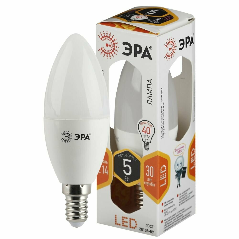 Лампочки ЭРА STD LED B35-5W-827-E14 светодиодные (В) Е14 / E14 5 Вт свеча теплый белый свет набор 10шт