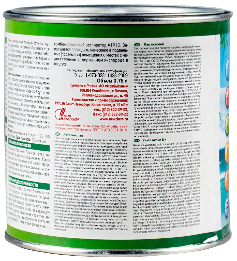 Новбытхим главный технолог лак яхтный для дерева, полуматовый, прозрачный (3л)