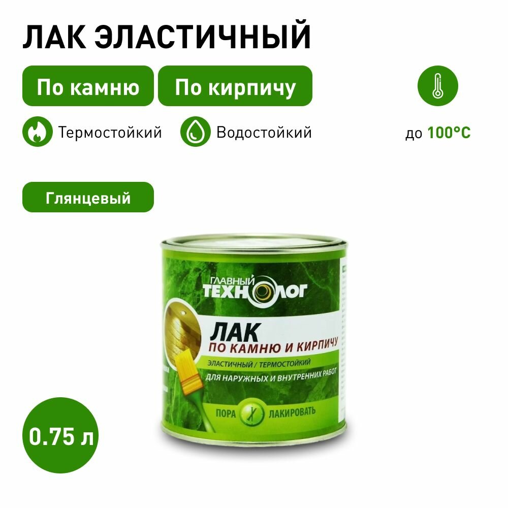 Купить Главный Технолог Термостойкий Эластичный лак по камню и кирпичу (бесцветный, глянцевый, 0,75 л)