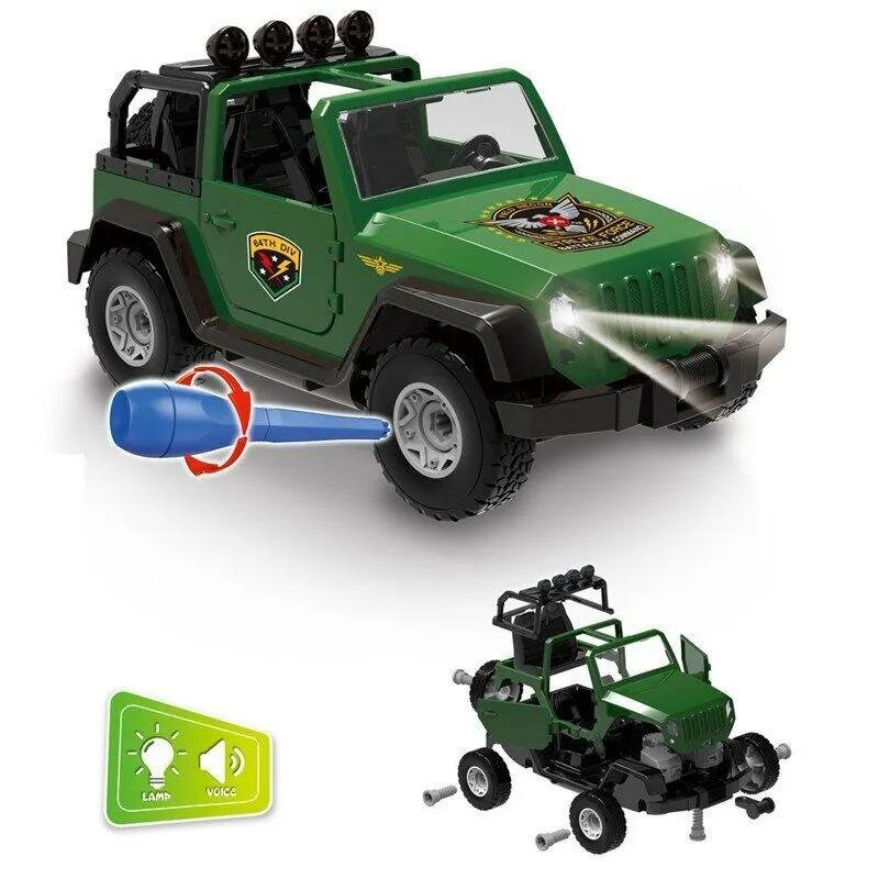 Конструктор-машина Play Smart с отверткой "Джип" 1377 свет, звук / Зеленый