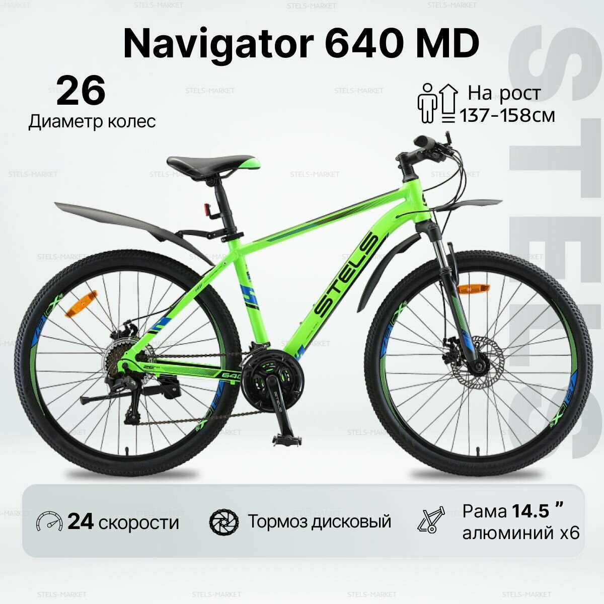 Велосипед 26 Горный Stels Navigator 640 Md (2020) Количество Скоростей 24 Рама Алюминий 14,5 Зеленый Stels арт. LU084815