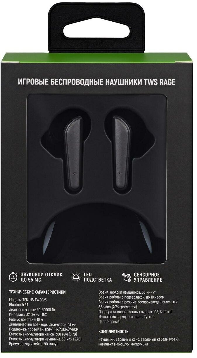 Наушники True Wireless игровые TFN TWS Rage TFN-HS-TWS023BK интересное: