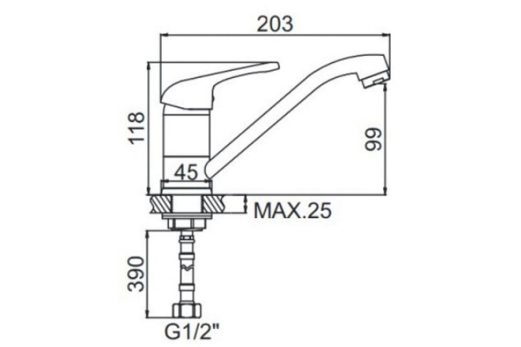 Смеситель для кухни 35к 4539В-2L Ledeme п/гайку с/отв кор излив, силумин
