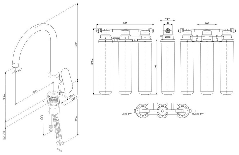 Купить Комплект для кухни (мойки) AM.PM Like F8007S00 смеситель для кухни с каналом для питьевой воды + фильтр Барьер Эксперт Slim Классик