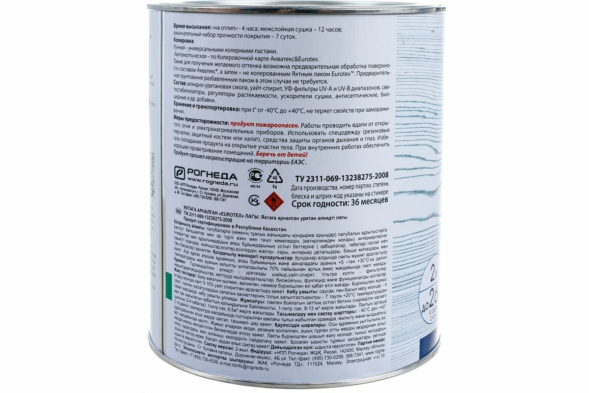Рогнеда Лак яхтный Eurotex, алкидно-уретановый, полуматовый, 0,75 л