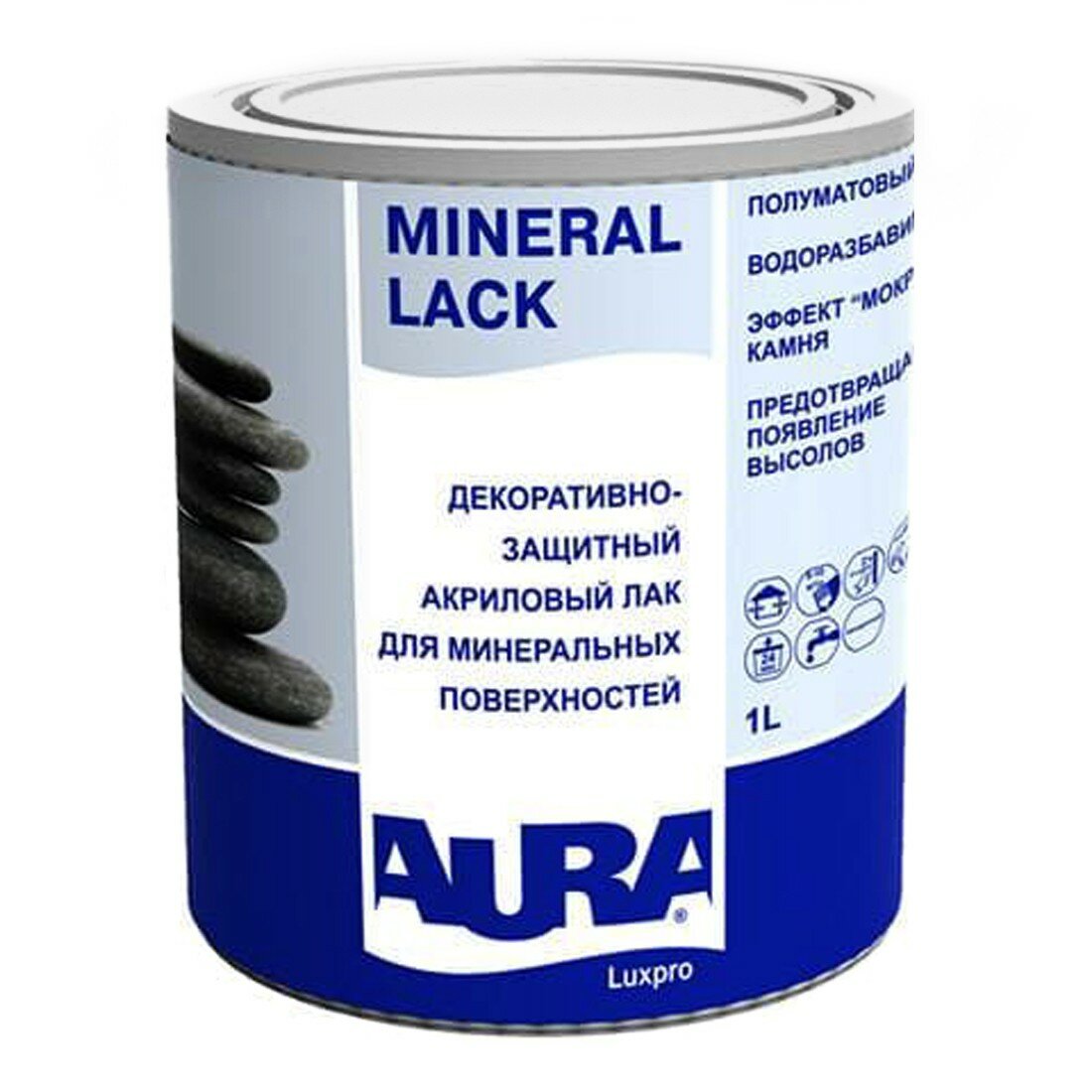 Лак для Минеральных Поверхностей Aura Luxpro Mineral Lack 1л Акриловый, Полуматовый с Воском / Аура.