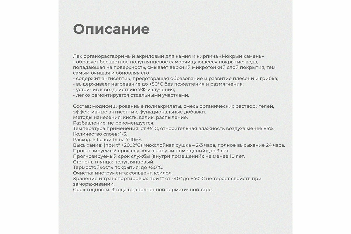 Эффекта "мокрого камня"нет!От слова СОВСЕМ! А вот запах убийственный,работать только с настежь распахнутыми окнами. Может быть надо пять слоев,но уверена эффекта не будет. |