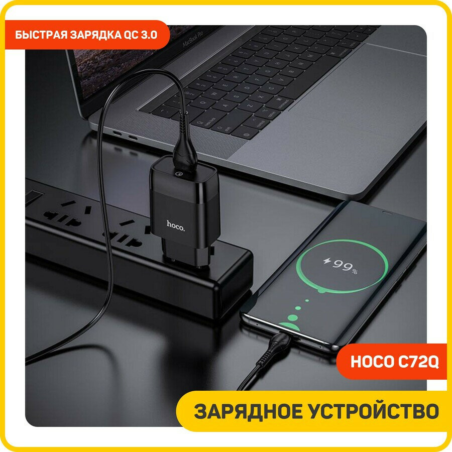 Зарядное устройство для iPhone Type-C 3A 20W. Hoco C12Q Hoco C72Q с шнуром Micro 1USB QC3.0 18W черное
