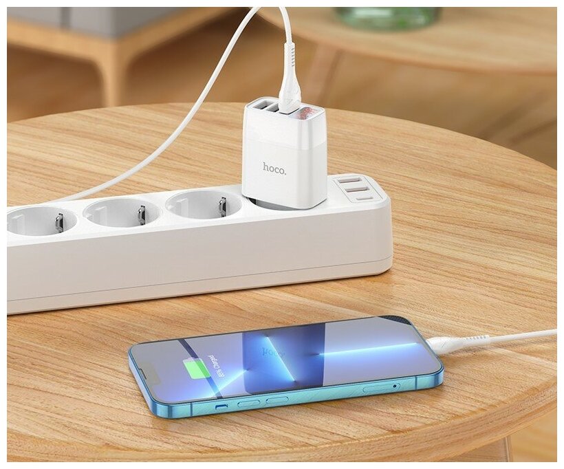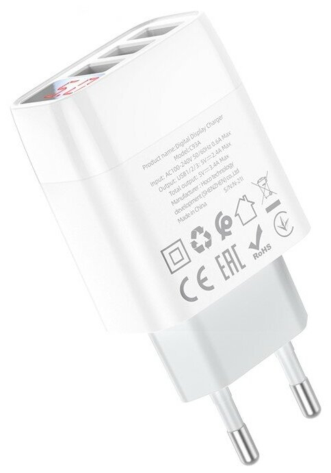 Сетевое зарядное устройство Hoco C93A Easy Charge 3xUSB, 3.4А, LED дисплей, белый