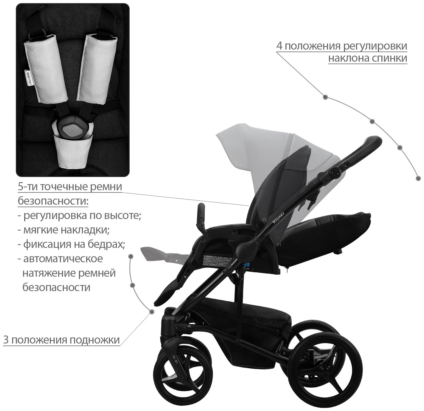 Универсальная коляска Bebetto Torino TEX (2 в 1), 03/черная рамa интересное: