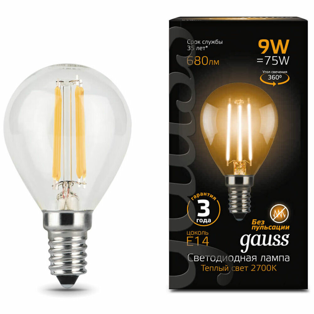 Упаковка ламп филаментная GAUSS E14, шар, 9Вт, 10 шт. [105801109]