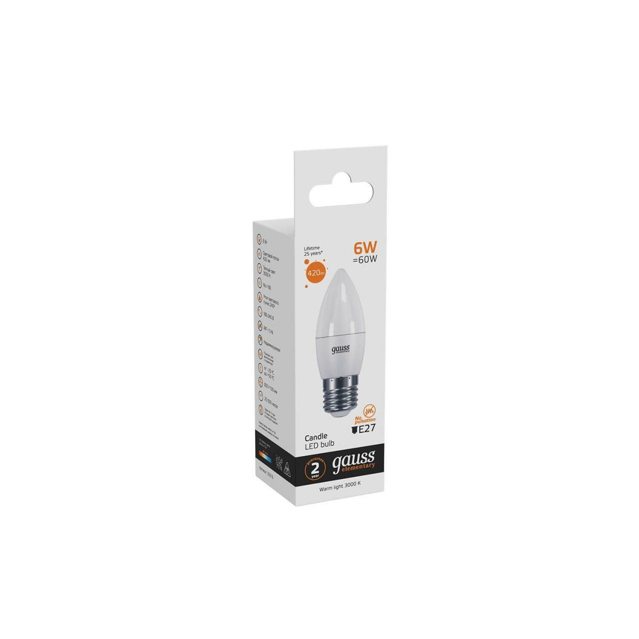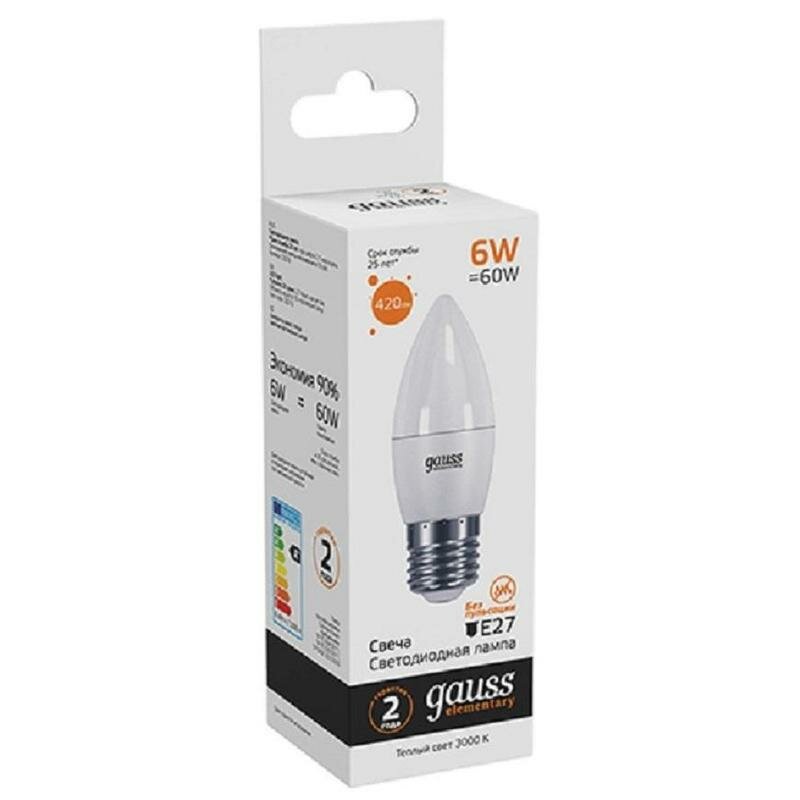 Лампа светодиодная свеча 6Вт Е27 3000(2700)К Elementary Gauss