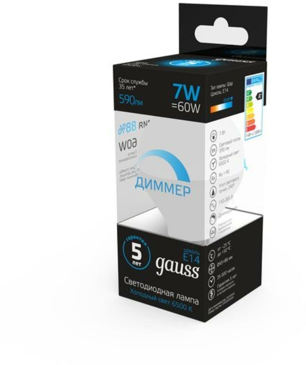Диммируемая лампа Gauss Шар 7W 590lm 6500К E14 LED 1/10/100 105101307-D интересное:
