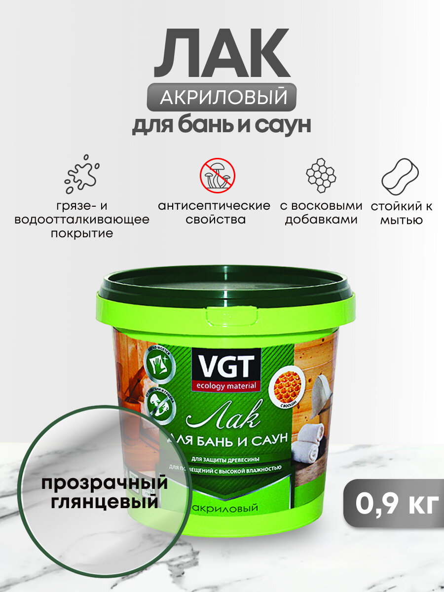 Предприятие ВГТ ООО Лак для бань и саун VGT, акриловый, 0,9 кг