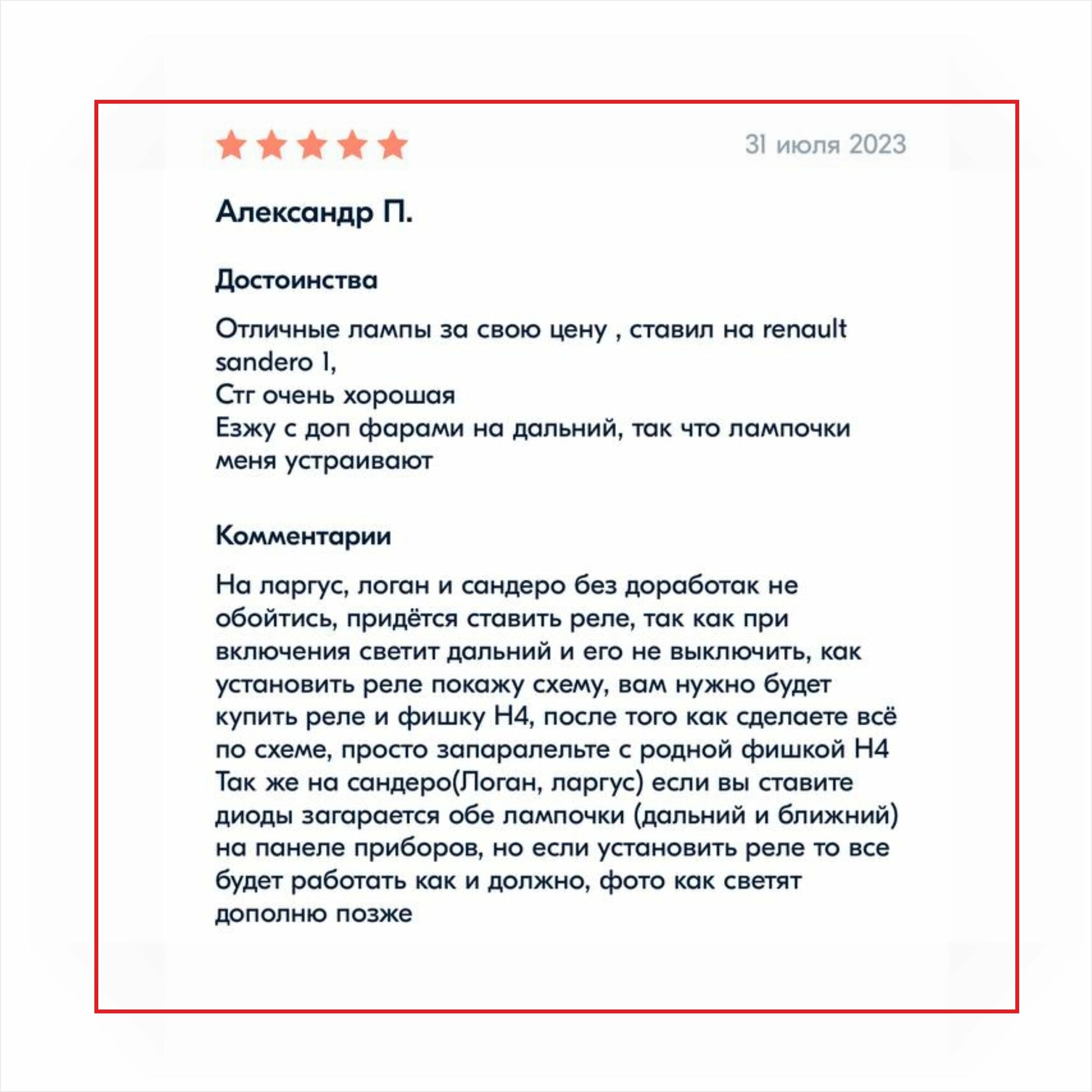 | Отзыв: | Оказалось, что дальний не включается, хотя светодиоды есть для дальнего. Или же лампы светят так сильно, что дальний не ощущается. На дороге еще не пробовал, но светят ярко белым, менты могут домахаться за за такое!!! |