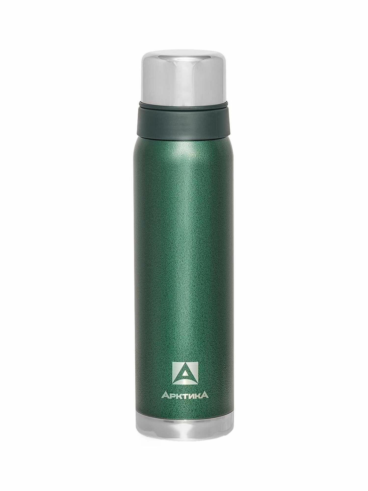 Арктика Термос с узким горлом и глухой пробкой со съемным ситечком, 2 накручивающиеся чашки в комплекте, объем 0,9 л.зелёный 106-900C GN