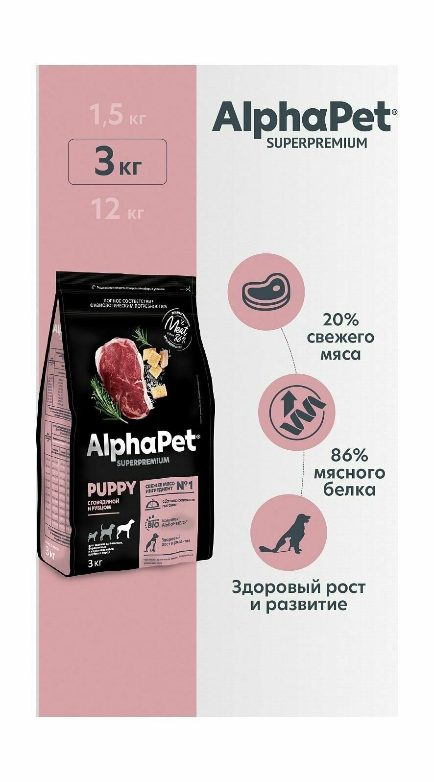 AlphaPet Superpremium 3кг корм для щенков крупных пород с говядиной и рубцом