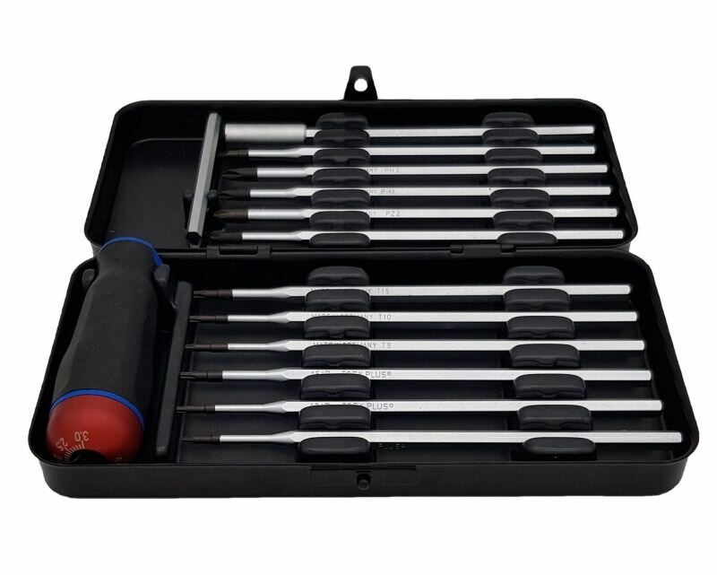 10099716 Felo Отвертка динамометрическая Серия Nm 1,5-3,0 с набором насадок 12 шт в кейсе plus/minus .