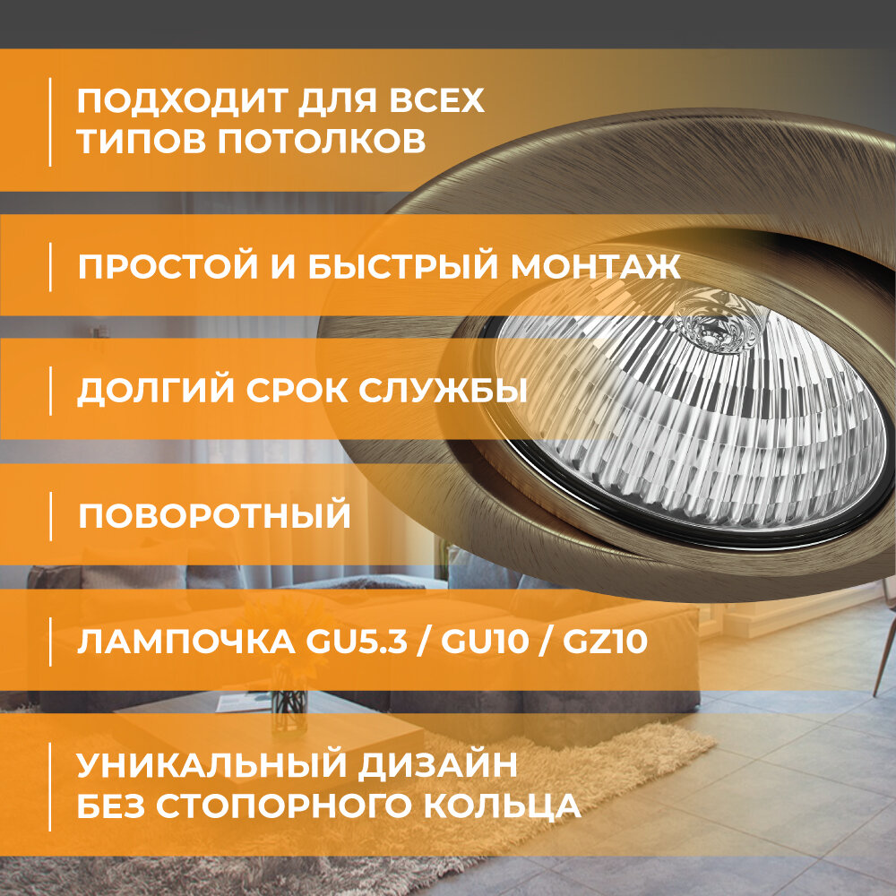 | Дополнительная информация | крепление пружинное; монтаж врезной; цоколь ламп Gu5.3, GU10, GZ10; типоразмер лампы MR16, HP16 |